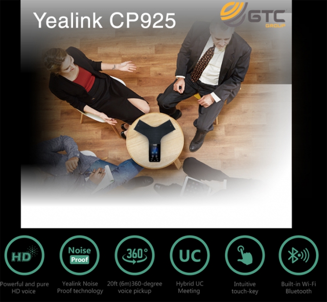 - Yealink CP925 kế thừa Yealink CP920, chiếc điện thoại hội nghị này có một diện mạo mới, hiện đại và tinh tế hơn rất nhiều, làm tôn lên vẻ đẹp của bất kỳ phòng họp nào. Được phát triển cho các phòng họp nhỏ có tối đa 5 người, sản phẩm này cho phép người dùng tham gia vào các cuộc thảo luận có độ phân giải cao nhờ các công nghệ âm thanh thông minh có trong sản phẩm này. Yealink CP925 hoạt động thông qua cổng internet trong phòng của bạn và cho phép bạn tận hưởng một phòng họp cố định mà không bỏ qua phần kết hợp của thế giới kinh doanh ngày nay.