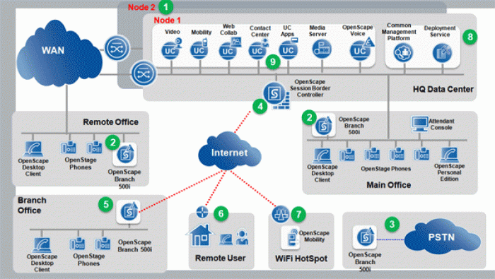 Đối với các doanh nghiệp có nhiều chi nhánh thì OpenScape Voice đóng vai trò như là đơn vị chuyển mạch trung tâm.
