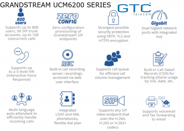 Grandstream UCM6200 là hệ thống IP PBX được làm giàu với các tính năng khác như là tốt và nó bao gồm;