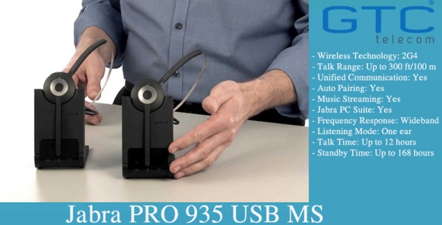 Jabra PRO935 USB MS tai nghe không dây tối ưu cho Microsoft Lync, có plug-and-play với tất cả các nền tảng Lync cho đơn giản thiết lập các tính năng và chức năng điều khiển cuộc gọi trực quan cho người sử dụng thông qua dễ dàng.