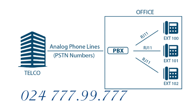 - Với hệ thống điện thoại văn phòng, cơ bản bạn có hai lựa chọn. Bạn có thể chọn giữa analog kế thừa (PBX) và hệ thống điện thoại IP hiện đại (PBX IP). Tùy thuộc vào quyết định của bạn, bạn sẽ triển khai một hoặc hai mạng riêng biệt. Khi lựa chọn hệ thống điện thoại analog, bạn sẽ phải triển khai một mạng cho điện thoại analog và một mạng thứ hai cho hạ tầng CNTT của bạn. Khi chọn hệ thống điện thoại IP hiện đại, bạn có thể triển khai điện thoại IP và máy tính trên một mạng duy nhất.