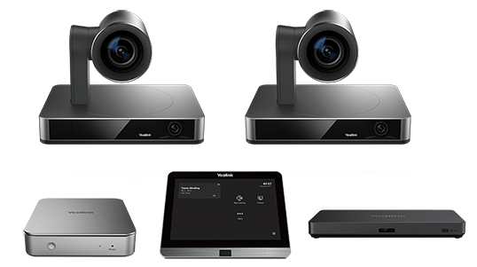 Bộ thiết bị hội nghị trực tuyến Yealink MVC960 Microsoft Teams Rooms gồm 2 camera UVC86, MCore Pro PC, bảng điều khiển cảm ứng MTouch II, 2 WPP20 và AVHub. Camera 4K