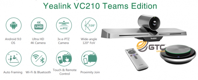 Người dùng có thể tận hưởng hình ảnh từ camera Ultra HD 4K Yealink VC210 với tính năng tự động đóng khung và trường nhìn xoay 120 °, vì vậy người dùng có thể chắc chắn rằng mọi người tham gia đều có thể được nhìn thấy trong cuộc họp. Hơn thế nữa, VC210 đi kèm với 6 mảng micrô tạo chùm tia tích hợp, Wi-Fi và Bluetooth cho phép người dùng giảm bớt sự lộn xộn của cáp trong phòng họp.