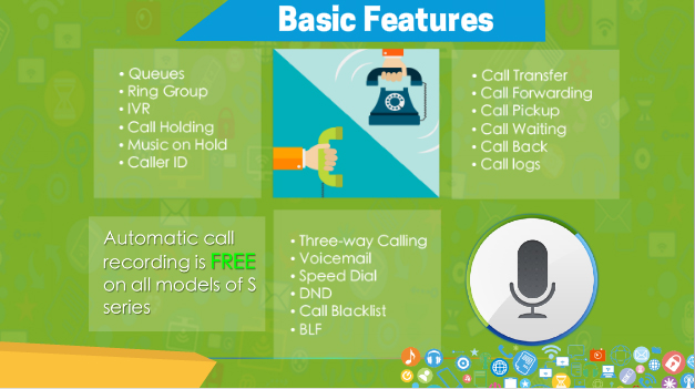 - Hỗ trợ nhiều tính năng như IVR, chuyển cuộc gọi, ghi âm cuộc gọi, voice mail, chuyển voice mail